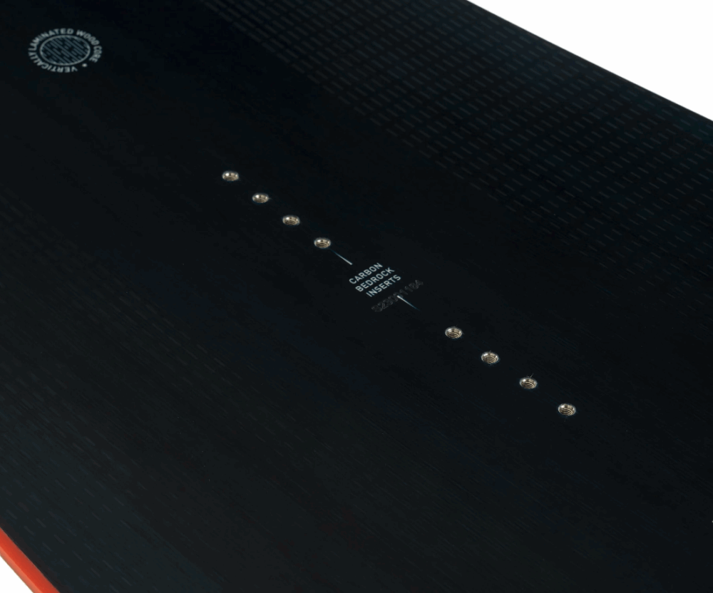 – WKŁADKI CARBON BEDROCK – zmniejszają całkowitą wagę deski i pozwalają na bardziej spójny flex pod stopą